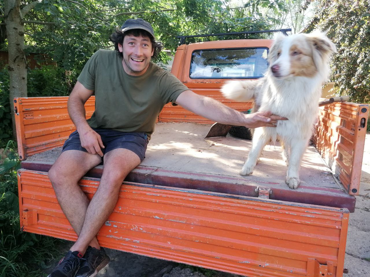 Ich bin Hannes und lebe mit Maylana im Wohnwagen hier auf dem Hof.